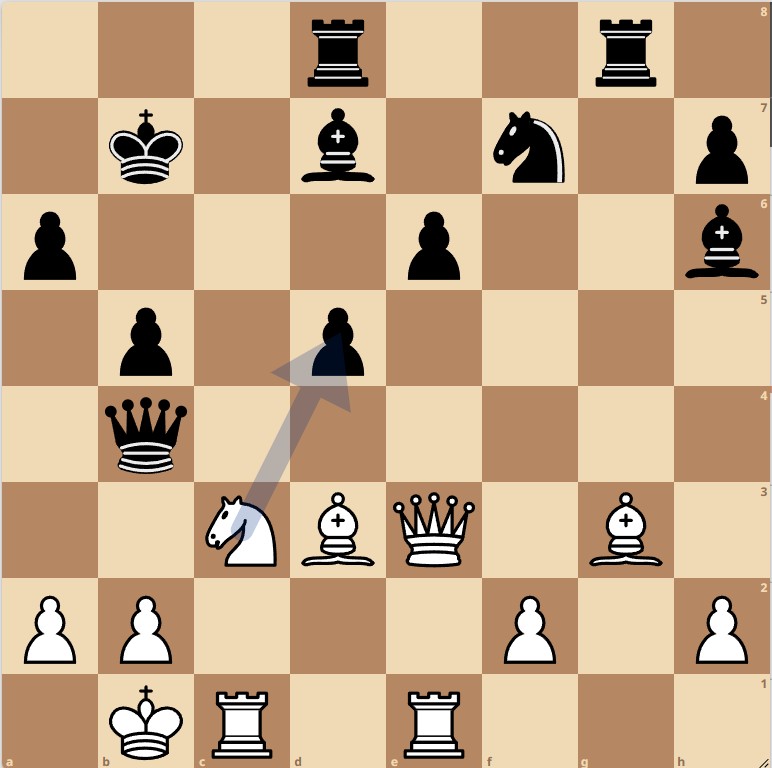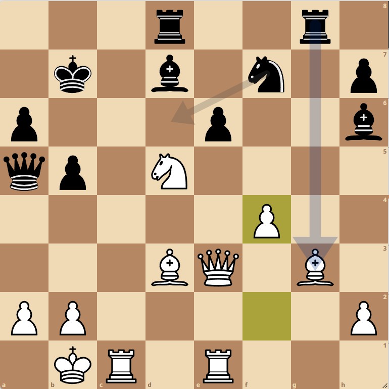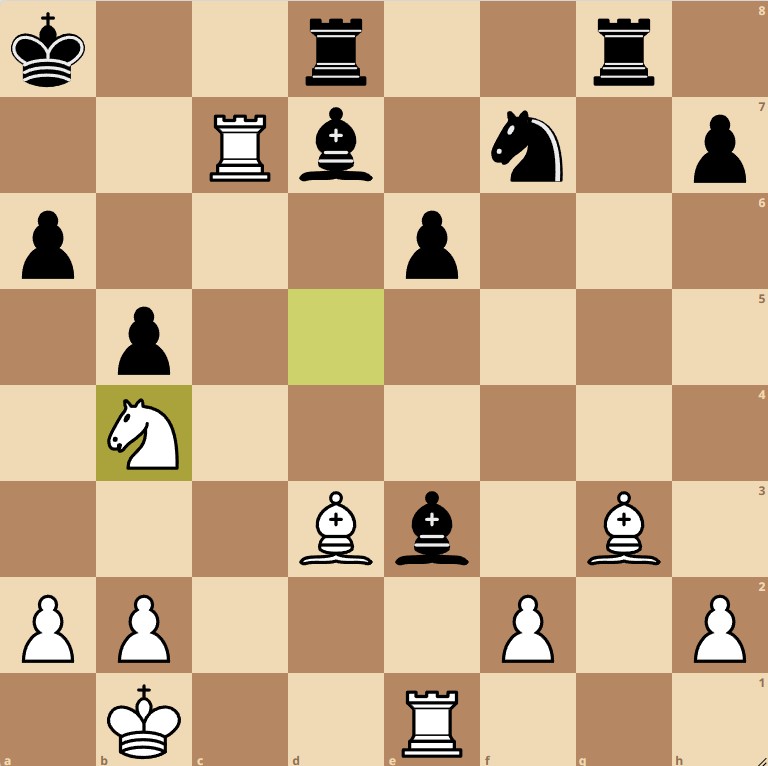 Om mijn stelling uit de beknelling te halen, besloot ik een kwaliteit te offeren voor een pion en wellicht tactische kansen. Dat wil zeggen: daar hoopte ik op.