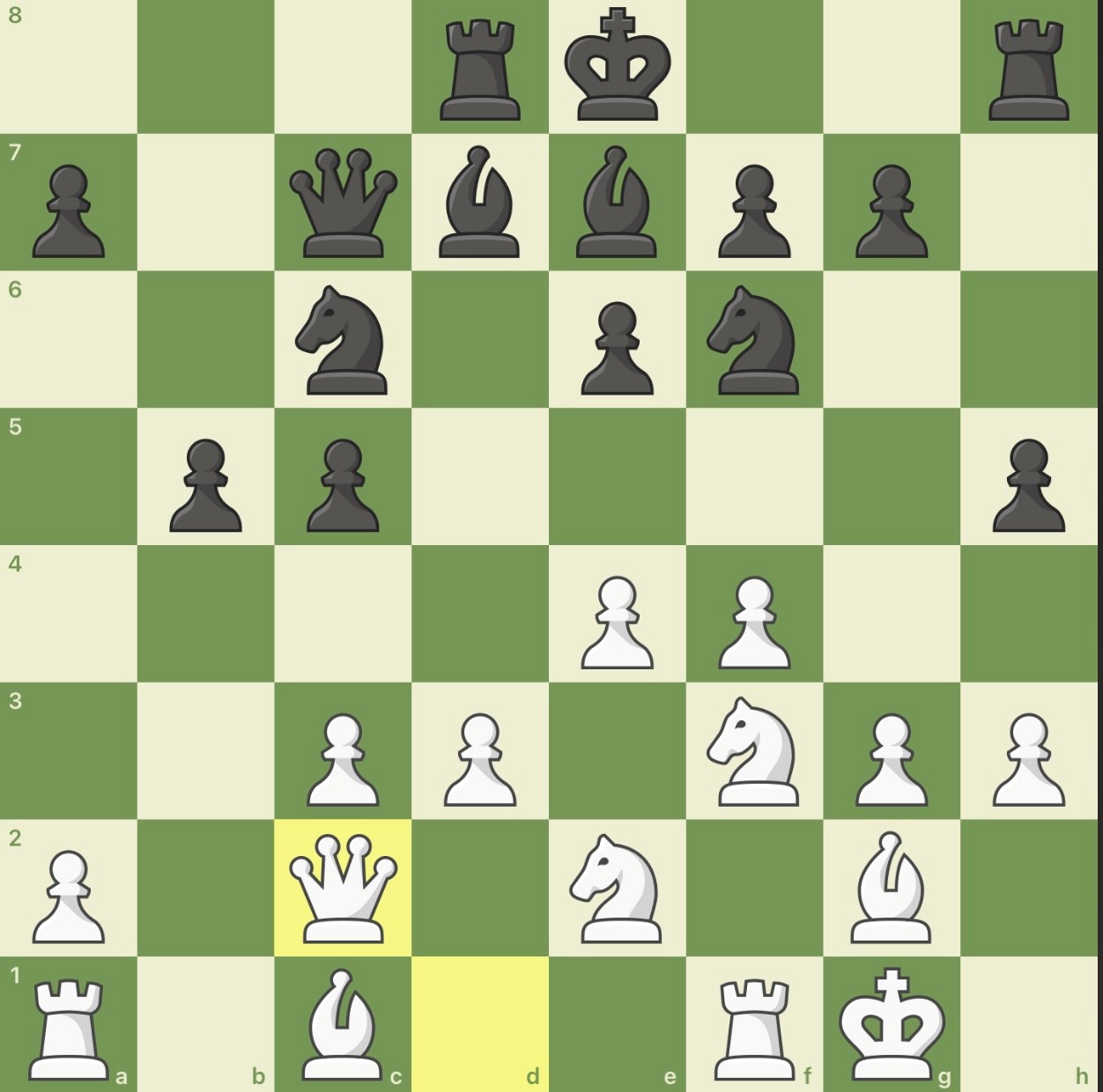 Op termijn wil zwart d4 spelen en zijn centrum versterken met een massief pionnenblok (veld d4, e4 en f4). Sven haalt zijn dame weg uit de d-lijn in verband met de oppositie met de toren op d8. Zwart antwoord nu met Tc8 om een batterij van toren en dame te vormen in oppositie met de witte dame en ook om een opmars van de b-pion mogelijk te maken.
