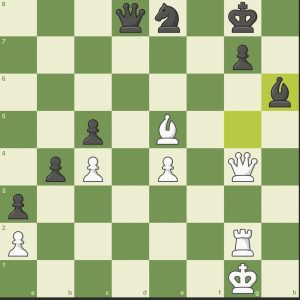 Deze zet, Lh6, is een flinke fout waardoor het snel uit is. Beter was Le3 schaak gevolgd door De7. Ook dan nog staat wit gewonnen. 37. De6 Kf8 38. Tf2 Pf6 39. Ld6. Zwart gaf op.