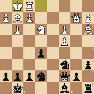 Mijn tegenstander liet al vroeg in de partij dubbele geïsoleerde pionnen op de c-lijn toe. Ik dacht dat deze structurele zwakheid ondanks het loperpaar mij een voordeel zou moeten geven. Mijn tegenstander had het echter beter ingeschat en ik kwam later onder lichte druk door het sterke loperpaar (ik wou dat ik het essay van Jan de Leeuw over de sterke loper(s) (zie voorgaand stuk op de site) eerder had gelezen). Desondanks dacht ik na 19…Pa5 druk te kunnen zetten op de pion c4. Ik zag echter de winnende zet voor wit over het hoofd. Ik laat het aan de puzzel liefhebber over om deze te vinden….