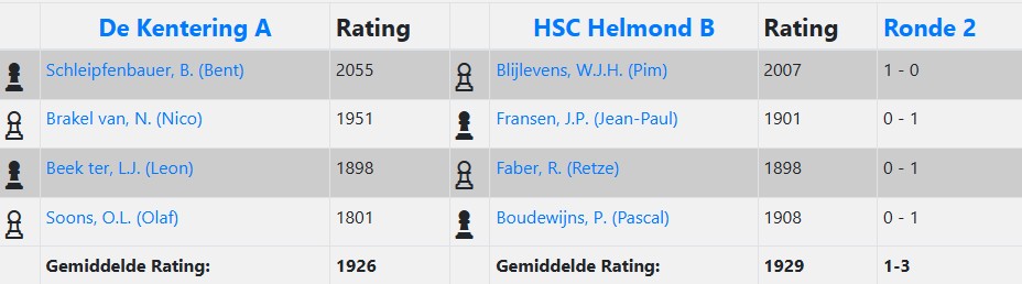 Maandag 20-10-2025 speelde het team van De Kentering A haar eerste thuiswedstrijd van het seizoen. De tegenstanders maakten hun opwachting vanuit Helmond en iets na achten werden de schaakklokken gestart.