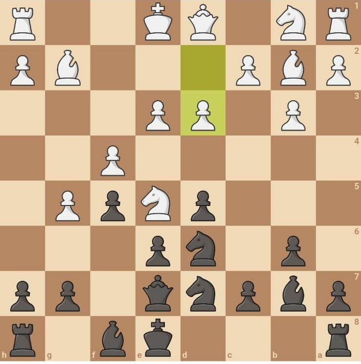 na 12. d3?! weet ik voordeel te creëren met 12. … Pxe5 13. Lxe5 Pf7! 14. Lc3 e5 waarna wit’s stelling onder druk komt te staan.