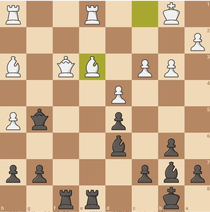 Wit heeft zwaktes van zwarte gespot op de achterste lijn, in combinatie met de witveldige loper op h3 welke loert naar c8.