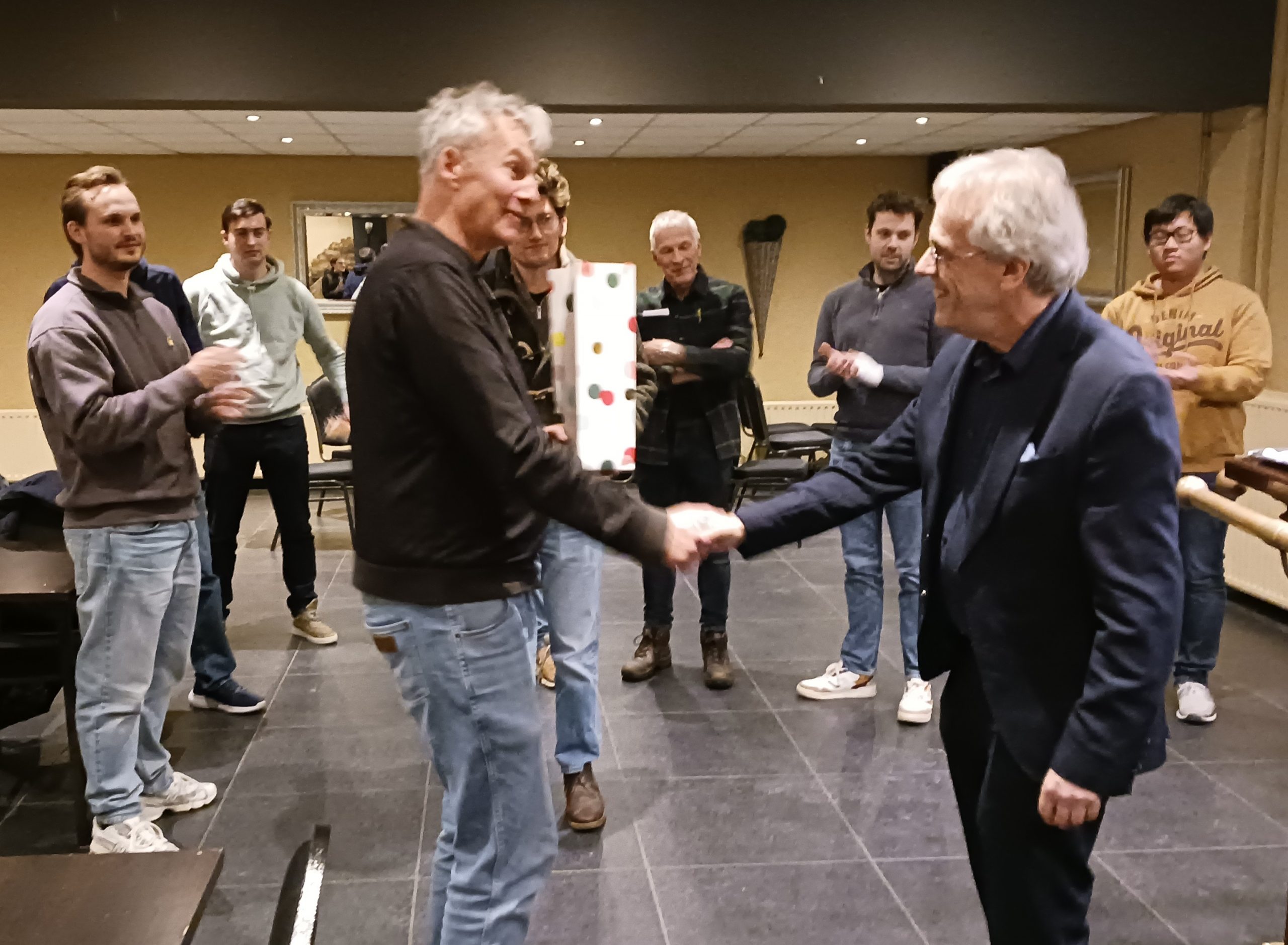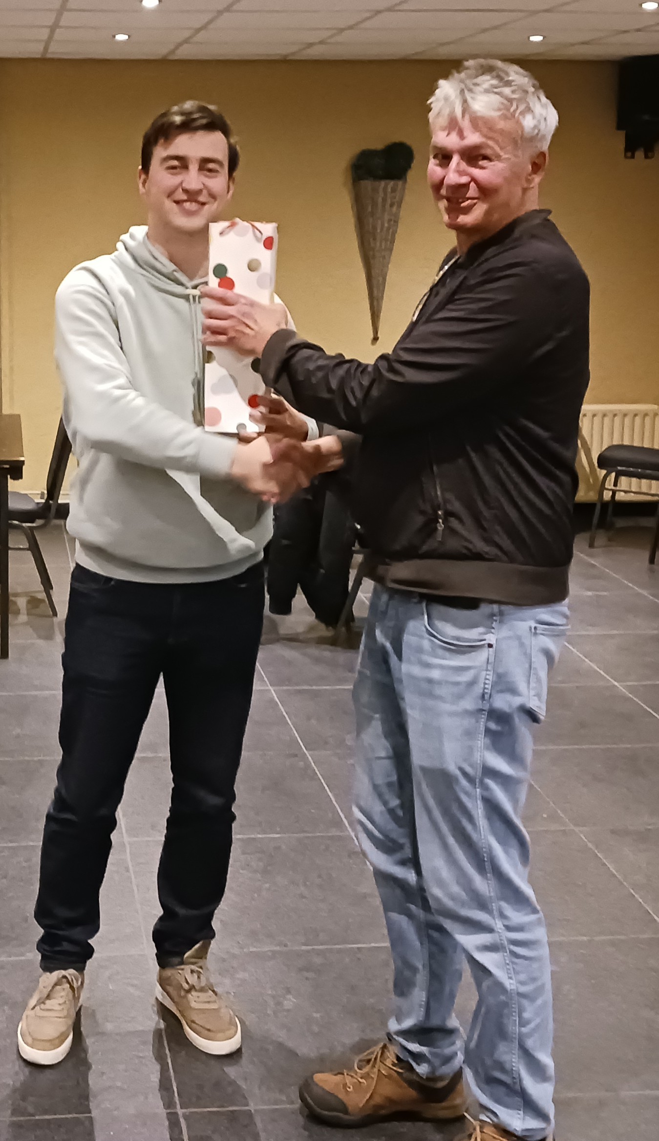 Ook Mike werd in het zonnetje gezet vanwege zijn succesvolle trainingssessies op clubavonden en zijn bijdrage aan de gastles: hij bespreekt aanstaande maandag 12 januari om 19:00 uur de opgaven die Herman achterliet voor de liefhebbers en heeft de goede antwoorden.
