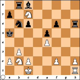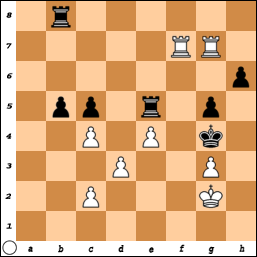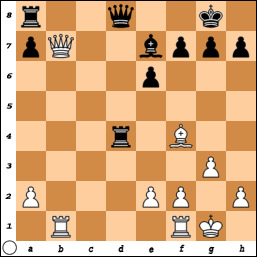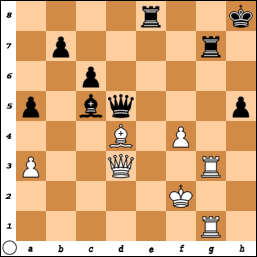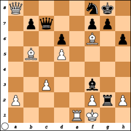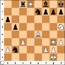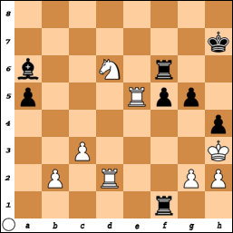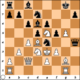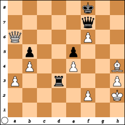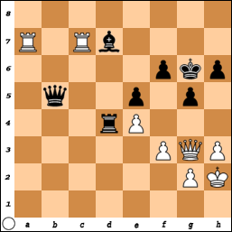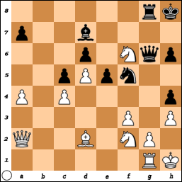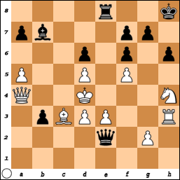 Door naar de volgende schaakstelling, uit een partij tussen Mann en Papp (stelling 12). Hoe beslist Papp, spelend met zwart, de partij?