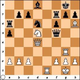 We pakken het schaakbord en weer bij en gaan voor de volgende partij naar Moskou (stelling 19). Met welke combinatie besliste Popov, de witspeler, zijn partij tegen Lipnitski?