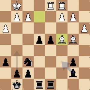 Van mijn partij bespreek ik een interessant fenomeen, het ‘gouden veld’. Vast geen gebruikelijke benaming, maar ik bedoel ermee, een veld dat in de partij een grote rol speelt in verkrijgen van voordeel. In mijn partij was dat het plaatsen van de loper op c6. Twee maal was Lc6 precies de juiste voortzetting. Ik heb dat ook wel eens met Tc3 gehad, en vermoed dat er ergens een (schaak-)wetenschappelijke logica in schuilt, dat soms in een partij een veld zoveel sterker is om te bezetten. Klinkt misschien als een open deur – paard plaatsen op het veld voor de geïsoleerde pion bijvoorbeeld, maar in dit geval is het minder evident, totdat je de stelling hebt bestudeerd.