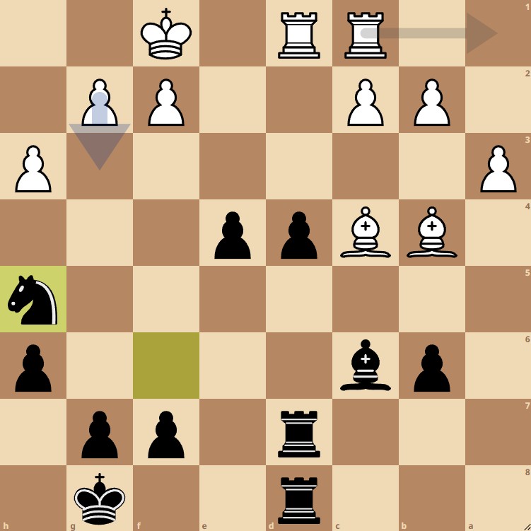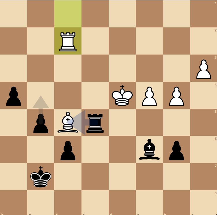 42… Txf5!! Door de sterke loper kan wit promotie op h1 niet voorkomen. 43. Txf5 h3 44. c5 h2 (go Henri!) 45. Tf1 b5 wat staat die loper daar goed op c6! 46. a4 g4! 47. axb5 Lxb5 48. Ta1 g3! 49. Ke3 g2 en wit gaf op. 0-1