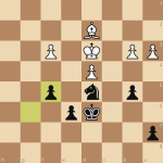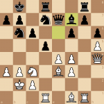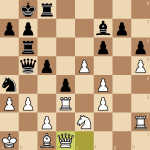 (Loper, Paard, Toren en Dame) aanvallend vs. (Loper, Dame, Toren en pion) defensief. 4 tegen 4 lijkt net genoeg voor de verdediging maar Zwart vindt een geniale zet: