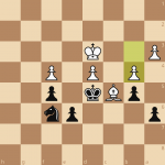 Beter was om bijvoorbeeld Le7 te spelen en verder te keepen. Nu kan de loper niet op tijd terugkeren om de zwakke pionnen aan beide kanten van het bord te beschermen. Het was praktisch gezien al echter moeilijk voor wit om de juiste zetten vinden in deze lastige stelling. Ik geef nog de laatste zetten van de partij om de kracht van het paard in deze stelling te laten zien waarbij ik eerst 1 pion en daarna mijn 2e pion kan veroveren: 42…Ph5 43. Ke3 Kc4 44. Ld6 Pf6 45. Ke2 Pe4 46. Lc5 Pc3+ 47. Kd2 Pd5 48. Ld6 Kd4 49. Le5+ Ke4 wit geeft op.