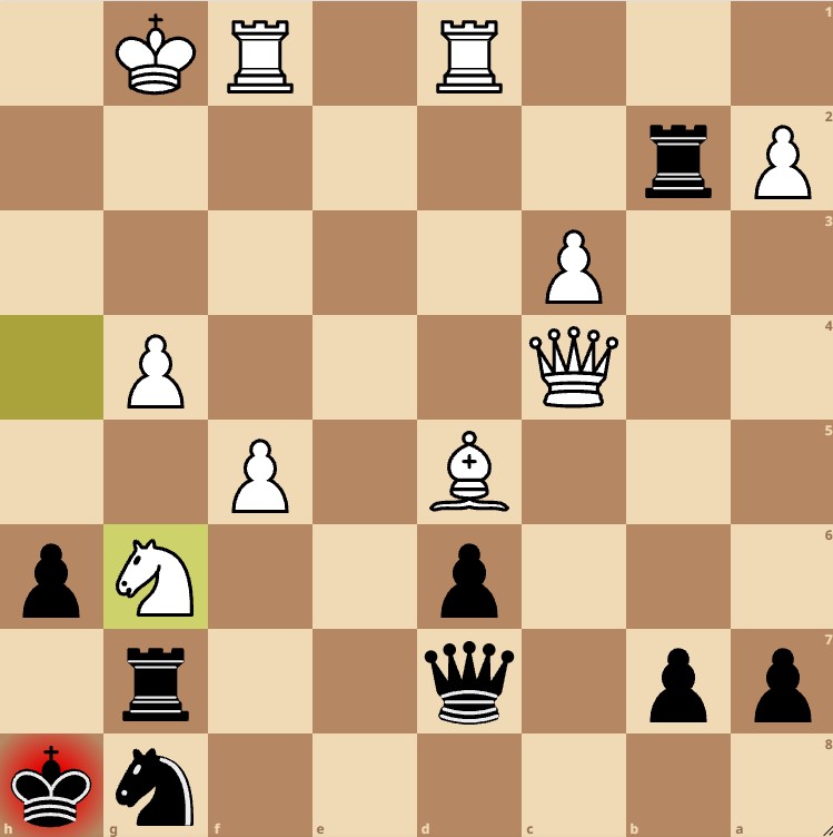 David: 26. hxg4 blijkt ook speelbaar voor wit. Het vervolg 26… Dxg4 27. Pe2 Lf6 28. Pf3 Pxg6 oogt gevaarlijk voor wit, maar is toch ook goed te verdedigen.